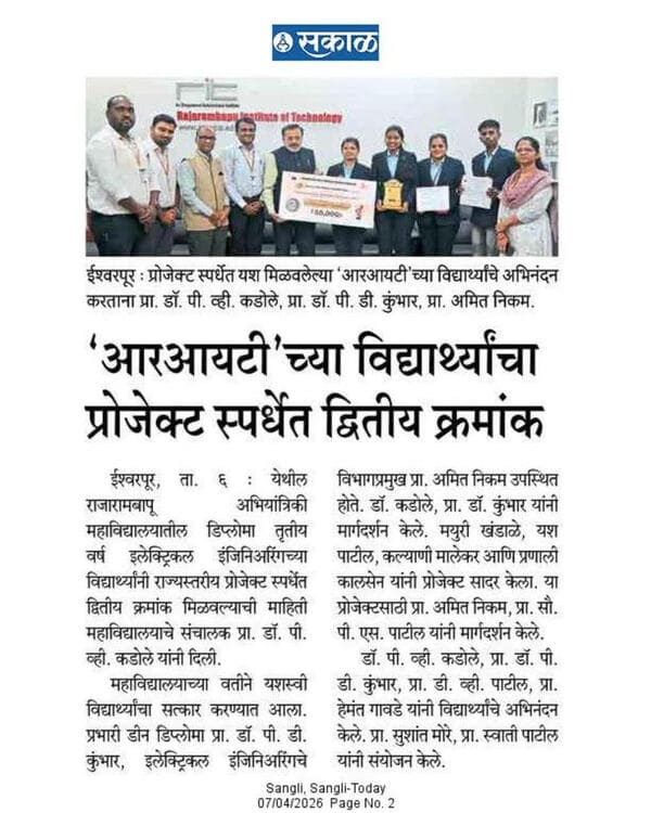 Rajarambapu Institute of Technology, Rajaramnagar (formerly known as the College of Engineering, Sakharale), was established in 1983. Situated near Islampur, just 7 km from Peth Naka on the Pune-Bangalore highway, the institute boasts a lush, green campus spread across 43 hectares, with a built-up area of 54,000 square meters. Over the past 43+ years, RIT has earned a reputation as a premier technological institute in Western Maharashtra, thanks to its dedicated and disciplined commitment to delivering quality technical education.
