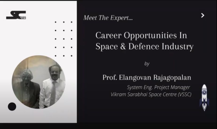 Discussed with the former ISRO Scientist Prof. Elangovan Rajagopalan on Career opportunities in Defence Industry. Shared Experience working in Defence Industry Shared Experience working in ISRO. They Shared thoughts on how ISRO developed their technology , experience working with Dr.A.P.J.Abdul Kalam sir.